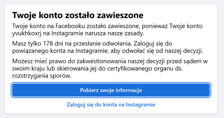 Zawieszenie konta na Facebooku z powodu powiązania z obcym kontem na Instagramie to wciąż częsty problem, z którym zgłaszają się do mnie użytkownicy. Co istotne, przyczyną blokady są konta na Instagramie, z którymi właściciele Facebooka nie mają żadnego realnego związku. Ten mechanizm nadal jest wykorzystywany przez hackerów i może skutkować niczym niezasłużoną blokadą nie tylko konta osobistego, ale też wszystkich przypisanych fanpage’y, a także brakiem możliwości założenia nowego konta.